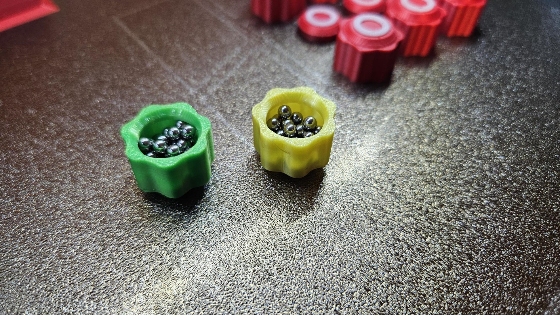 - leicht: "Spielwürfel" ohne Füllung. Rollen und hüpfen etwas weiter wodurch der Abstand der Spielwürfel größer ausfallen kann, was das Spiel an sich etwas erschwert.